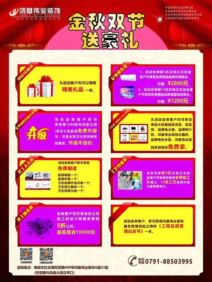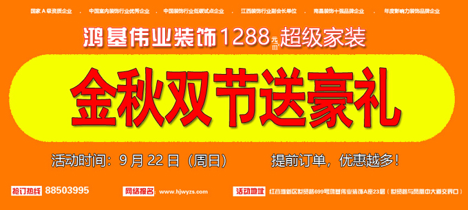 南昌鸿基伟业装饰金秋双节送豪礼,正在为装修问题困扰的朋友们。让我们开启一场神秘的家装之旅。