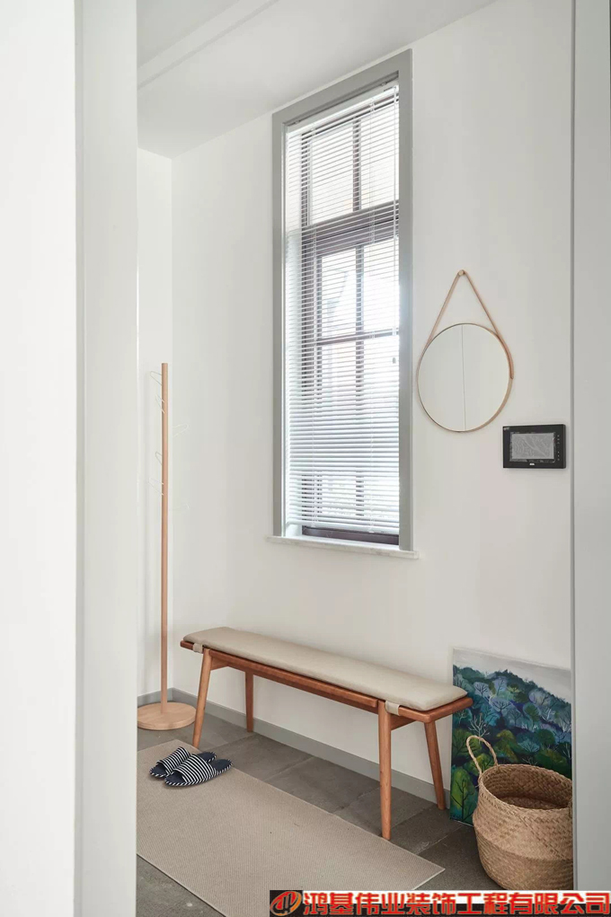 设计理念:设计的本质本套案例的房子地理位置和周边环境很棒,业主把这套房子用作休假使用,因此风格定位上确定为简洁度假风。入门玄关,一侧是长凳和衣架,另一侧是整面衣帽柜。