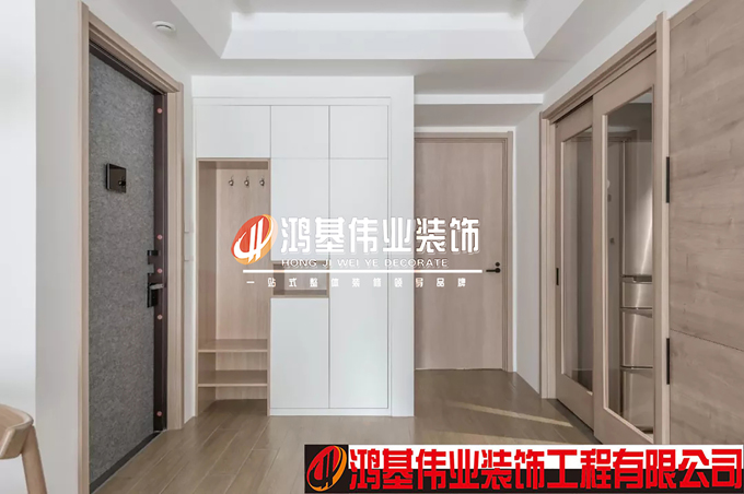 关部分防盗门做了简单的装饰处理,入户的衣帽柜坐凳 挂衣 放鞋 放包 各个功能一应俱全!