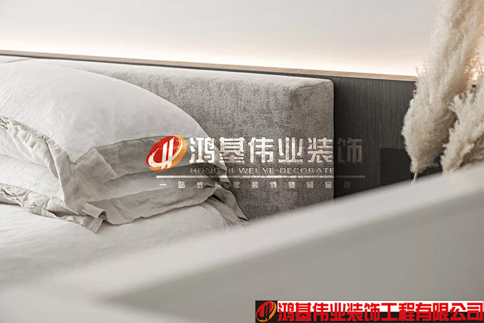 卧室之内,纯净的白,延续着整个空间的素雅,以温和、包容的方式,带来最大化的明快与利落。完全放开的卧室空间,带来另一份起居新体验,可谓日常生活里的小小异调与冒险。亚麻拼边的床品,从触觉中感知日常生活里的细腻、优雅与从容;可调节的间接灯光,隐隐洒下,更添一份弥漫的温情。