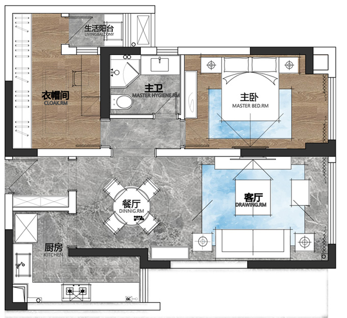 业主小姐姐喜欢聚集好友在家“露一手”自己拿手的厨艺,和朋友们的交流是她喜欢的活动,所以设计师果断为业主考虑了圆形桌子,让小姐姐与朋友们的互动更加惬意自在。