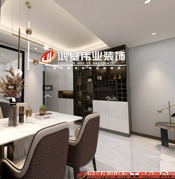 设计理念本案业主家庭成员结构为四口之家,夫妻二人均在事业单位工作,朝九晚五,喜欢旅行。设计风格上希望现代前卫又稍显高档,所以选择了当下流行的现代轻奢风格。入户门厅鞋柜连接酒柜通过不同门型以及开放格的设计,置物空间强大,又不显拥挤。