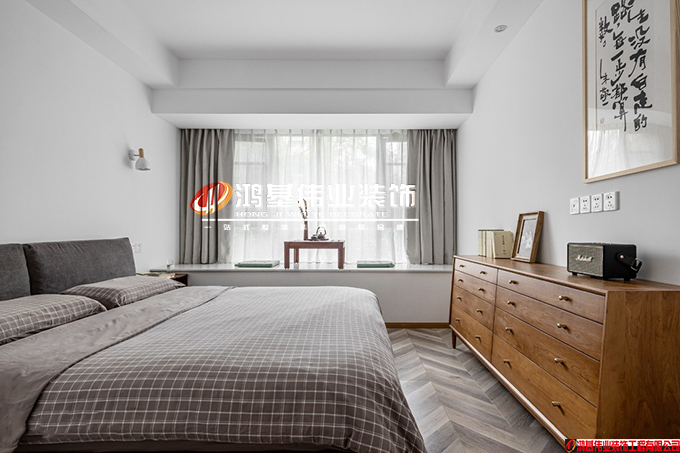 考虑到需要照顾老人和小孩的日常,所以在卧室我们尽可能的打造线条感极少的清爽空间,使他们在休息的时候感到最为舒适、放松。