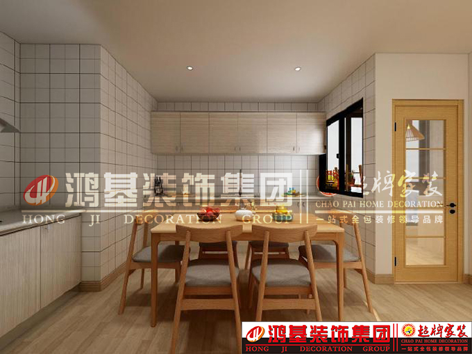 图二:是一个餐厅区域,和厨房规划在一起做了一个开放式厨房,灵活的动线使餐厅和厨房增加了一分生活的韵味。超大的台面地柜满足收纳空间。