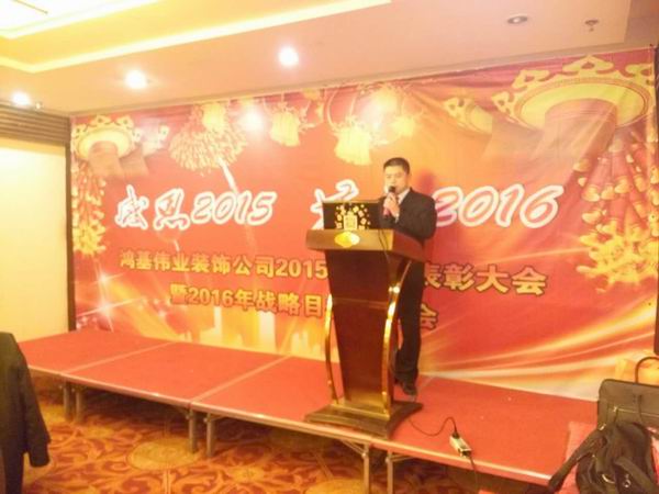 (鸿基伟业总经理胡克伟作2015年总结表彰大会暨2016年战略目标发布会)