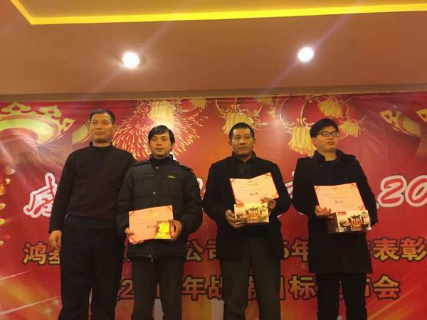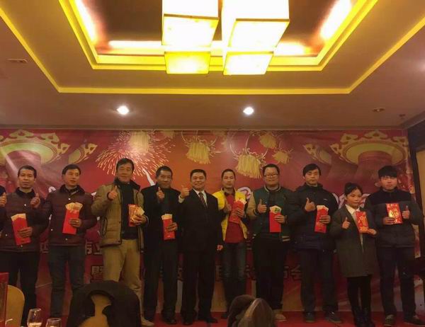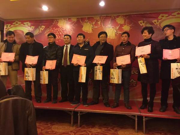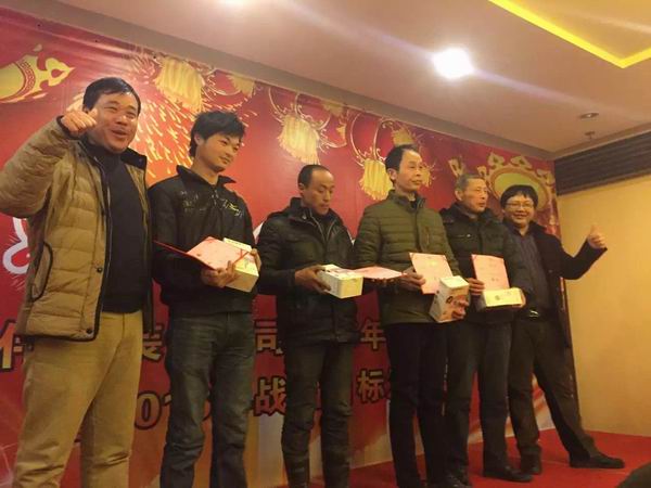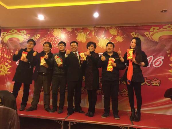 胡总为“2015年度优秀员工”颁发奖品,并合影留念