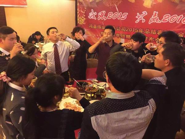 最后, 鸿基伟业人齐举酒杯,共同祝愿2016年鸿图大展,基业千秋,共赢2016