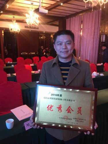 大会上区委统战部和区工商联联合为荣获2016年“年度优秀会员”和“年度积极分子”企业颁发荣誉证书。南昌市东湖区人大代表、区工商联副主席、鸿基伟业装饰公司总经理胡克伟先生年荣获“度优秀会员”及“年度积极分子”荣誉称号。