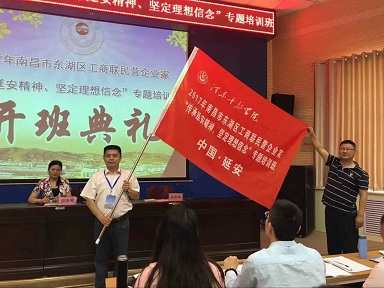 为隆重纪念中国人民解放军建军90周年,深入学习党的光荣历史,传承老一辈共产党员革命精神,积极培育和践行社会主义核心价值观。更进一步地让企业家接受爱国主义、集体主义和革命英雄主义的思想认识,提升对党的认识,学习、继承、弘扬红色精神,缅怀中国共产党以及老一辈革命家的丰功伟绩;打造交流平台,增强凝聚力。6月11日至15日,东湖区工商联组织非公有制经济人士在延安大学泽东干部学院开展了主题为“传承延安精神、坚定理想信念”为期3+2天的学习培训。东湖区政协副主席、工商联主席胡涛湘 ,东湖区人大代表、区工商联副主席、鸿基伟业装饰公司总经理胡克伟及非公有制经济人士共计37人参加了培训。