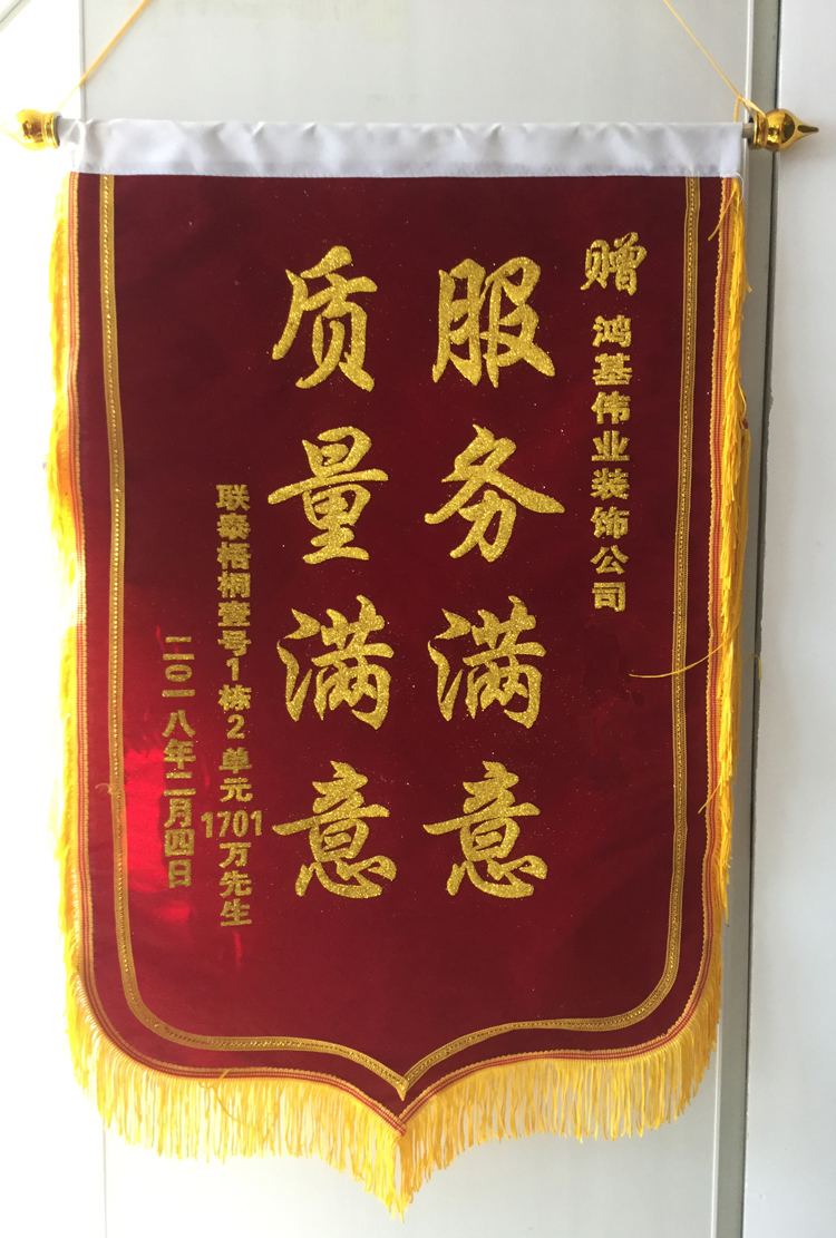 临近春节,鸿基伟业装饰各岗位员工均在有条不紊的忙碌节前的各项工作,但是,今天却意外收到一份令人惊喜的礼物——一面由联泰梧桐壹号业主万先生送来的锦旗,以致对鸿基伟业装饰表示称赞。