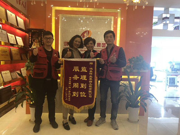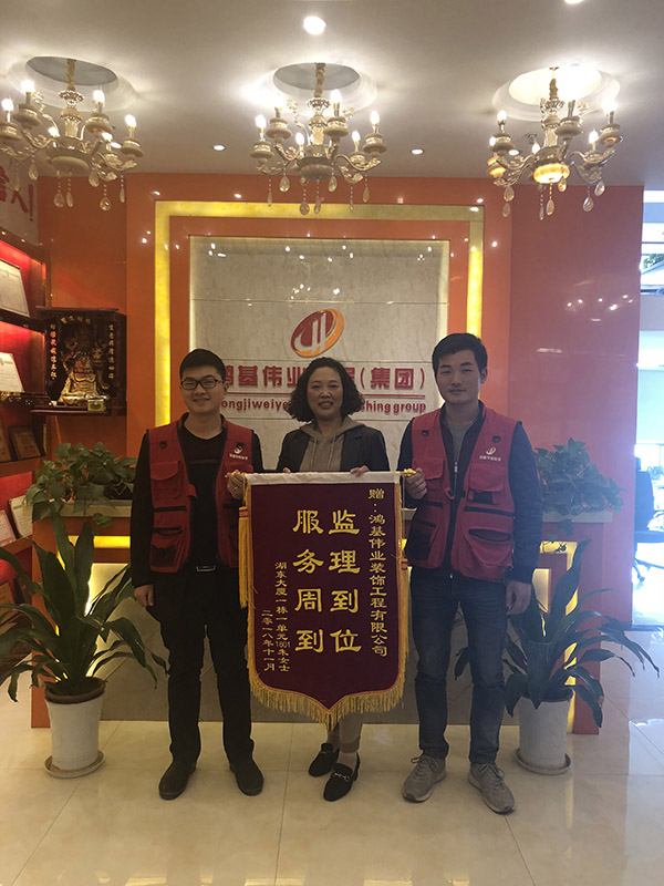 近日,南昌鸿基伟业装饰公司收到来自湖东大厦朱女士亲自送来的一面表示感谢的锦旗。小小一面锦旗,却寓意匪浅,她代表着业主对南昌鸿基伟业装饰公司高度认可与满意。