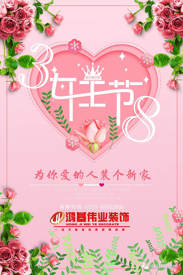 今天是3.8女神节,鸿基伟业装饰小伟首先祝各位女神节日快乐