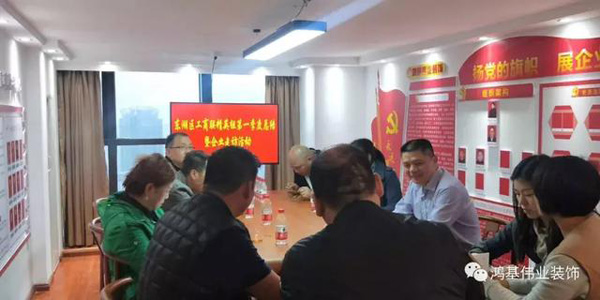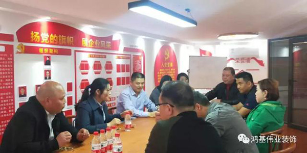 在走访鸿基伟业装饰公司过程中,代表们参观了鸿基伟业装饰公司党支部、工会的活动室和鸿基伟业装饰公司的文化墙,并对此给予了高度的肯定