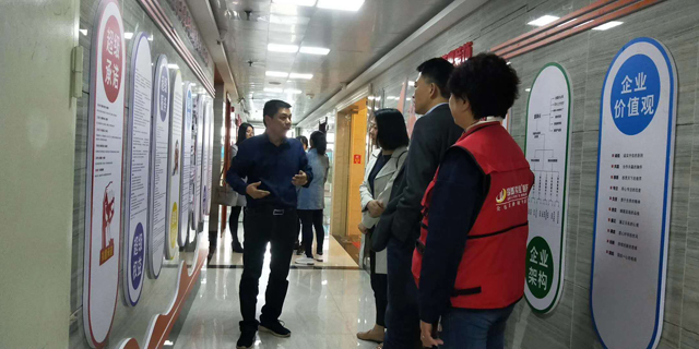 作为东湖区总工会联合工会农民工服务示范站、鸿基伟业装饰公司就企业党工建设、工会经费、企业文化建设等相关内容如实向各领导做了汇报。并参观了鸿基伟业装饰的“党工文化墙”、“爱心妈咪”小屋、员工书画室、员工谈心室,职工书屋等,董主任等领导一行对此给予了高度的肯定。