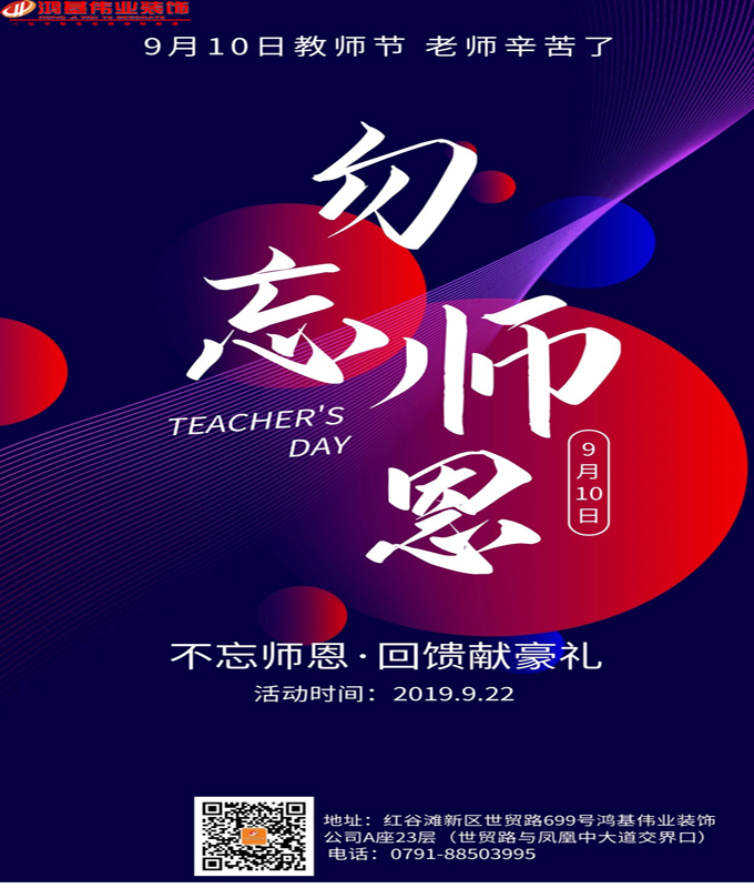 南昌鸿基伟业装饰公司全体员工提前祝教师们,节日快乐,勿忘师恩