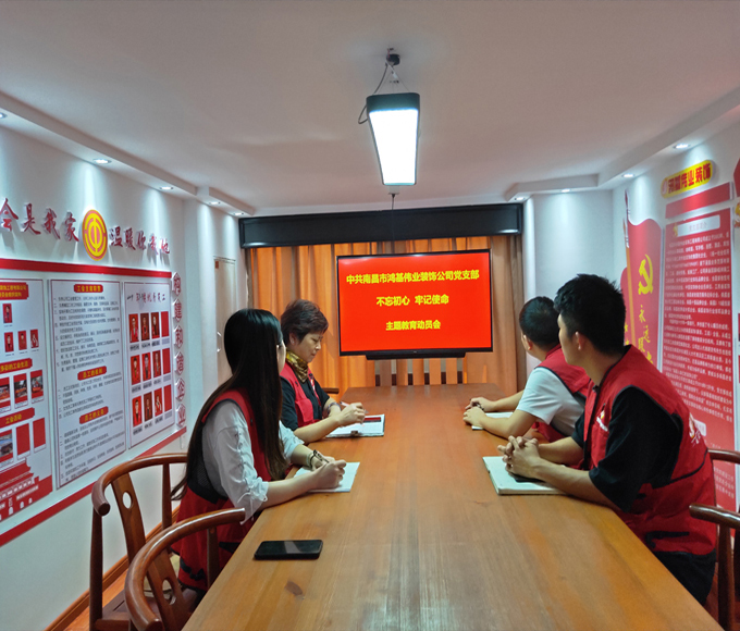 10月9日上午,中共南昌市鸿基伟业装饰公司党支部在支部办公室召开“不忘初心、牢记使命”主题教育动员会,党支部书记李筱玲组织党支部成员开展学习。会上,大家集体学习了习近平总书记在“不忘初心、牢记使命”主题教育工作会议上的重要讲话精神,强调要通过学习习近平总书记重要讲话精神,深入领会并坚决以高度的政治责任感、良好的精神状态,切实把 以“不忘初心,牢记使命”的精神贯彻工作中,始终坚持“以质量求生存,靠口碑树品牌,千锤百炼打造百年诚信鸿基伟业”的经营理念,“为规范中国装饰行业健康发展,使装饰行业成为中国的经济脊梁而努力奋斗!”的使命;切切实实为客户,为装饰行业,为社会实施自己的责任,推动装饰行业再上新台阶。