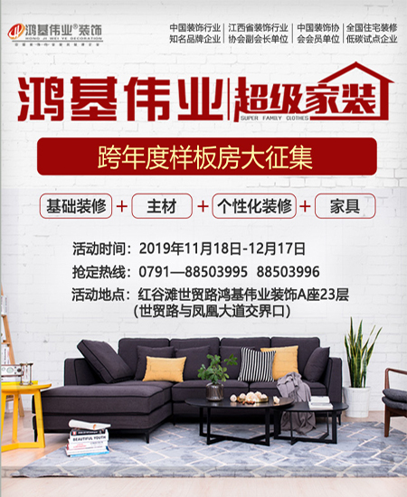 南昌鸿基伟业装饰在跨年时刻推出1288超级家装,《跨年度样板房大征集》,目前为止,活动正在火爆进行,业主装修预约抢定不断 !你还在等什么? 现在就拨打电话抢定,享受劲爆的优惠价!!!!