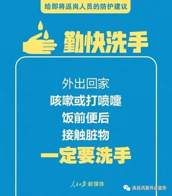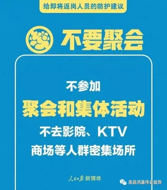 至此之时,南昌鸿基伟业装饰祝大家年初九到永久,愿你:留下奋斗的足迹,给事业久久的动力;留下欢乐的心迹,给生活久久的如意;留下美好的事迹,给生命久久的鼓励;年初九吉祥久久!幸福久久!另外,疫情期间,南昌鸿基伟业装饰提醒大家返岗期间防护注意事项,保护好自己,守护好家人,众志成城,武汉加油!中国加油!