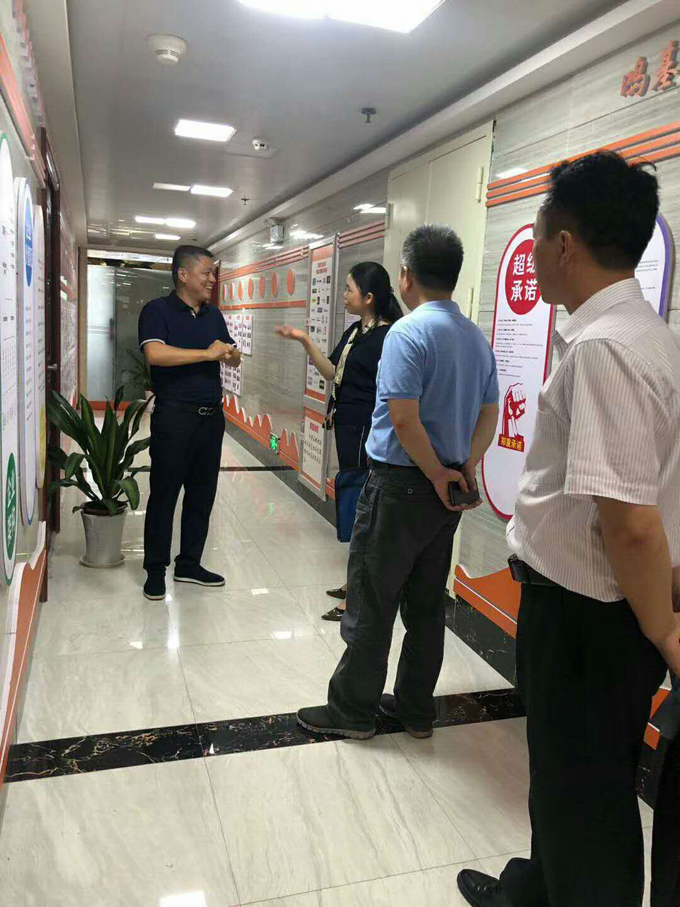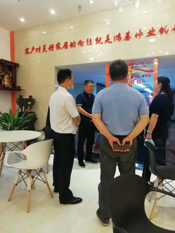 近日,省住建厅熊主任一行冒雨来到鸿基伟业装饰公司指导考察“省级青年文明号”建设情况,省室内装饰行业协会赵会长陪同。