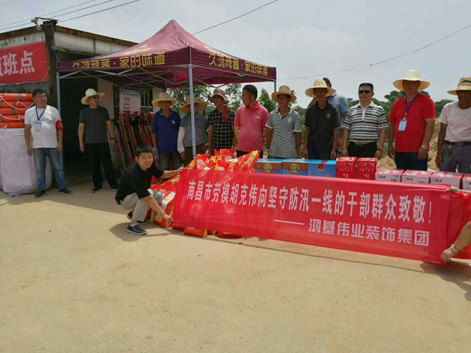 7月14日,南昌市劳模、鸿基伟业装饰集团董事长胡克伟代表公司全体同仁再赴扬子洲镇莘州村,察看受灾情况,询问灾民受灾程度,亲自为受灾村民送上食用油、大米、方便面、饮用水等生活物资,慰问致敬防汛一线的干部和群众,坚定抗洪防汛的信心和决心,感谢一线人员为防汛救灾所付出的艰辛努力,并叮嘱注意自身安全,做好防暑防汛措施,洪水无情,人间有爱。最后,胡总呼吁社会各界援助、温暖灾区人民,共同筑起防汛抗洪这道坚不可摧的钢铁屏障!