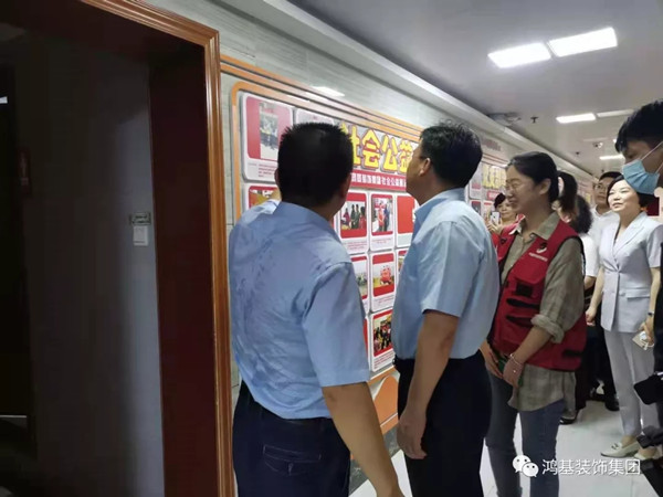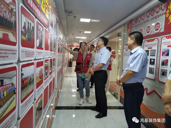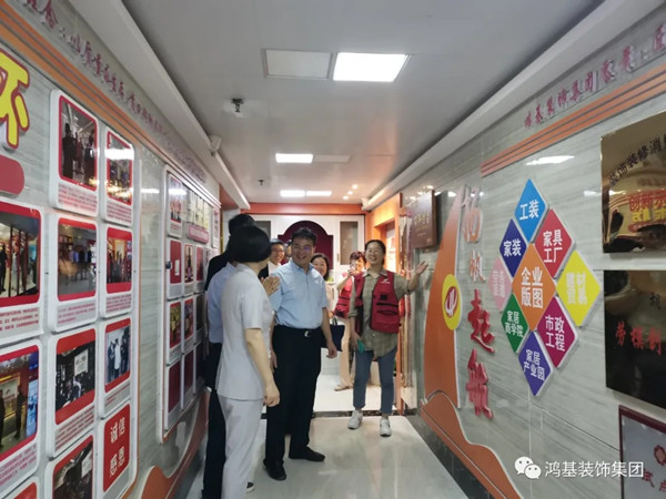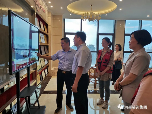 8月24日下午,东湖区委书记高辉红带队调研鸿基装饰集团《装饰装修行业消费者权益保护创新示范基地》,并实地察看基地建设情况。区委常委、统战部长李婷陪同,区委办公室主任万华,区委统战部副部长、区侨联主席姚涛、区新联会代表等参加。