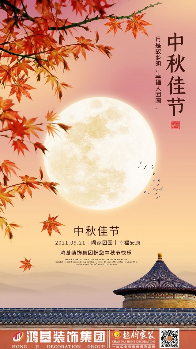 古往今来,中秋节就是中华民间传统的盛大节日,只要是个中国人,就注定了在八月十五这一天,举头望月与天涯共此时。当人们和家团聚,赏月、游湖之时就赋予了中秋节这样的意义,把人间温情与风物美景联系起来,让人们感受到和家团员的温馨、幸福与快乐。 鸿基装饰集团祝大家中秋节快乐,幸福人团圆。