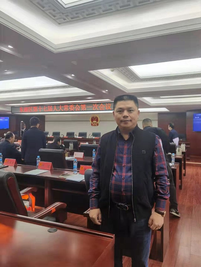 日前,南昌市东湖区第十七届人大常委会第一次会议召开,南昌市人大代表、东湖区人大常委、鸿基装饰董事长胡克伟参加会议。