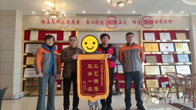 12.21日,高知公寓业主在百忙之中特意来到公司赠送锦旗,对鸿基装饰集团的施工质量和服务赞不绝口。