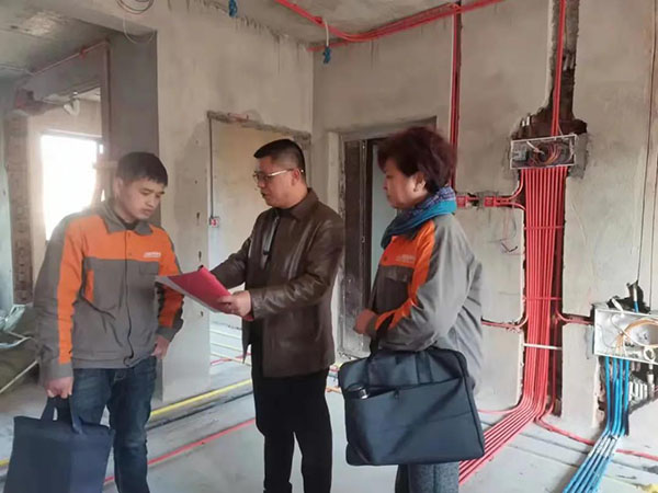 鸿基装饰集团每周都会不定期地对工地进行巡检,对装修工程的材料质量、施工工艺和现场文明安全施工等方面进行监督、管理。