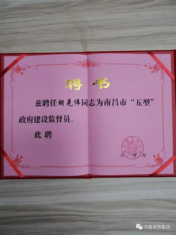 胡克伟表示:‘’此次能够被选聘为“南昌市“五型”政府建设监督员”!是荣誉、更是责任和鞭策!未来,会当好党委政府密切联系群众的“连心桥”,凝聚民心、反映民意、了解民情,以“心中有谱,脚下有土”的工作作风,以“打头阵、当先锋、做表率”的雄心壮志扛起省会责任,铸牢忠诚“第一底色”、夯实监督“第一责任”,心往一处想、智往一处谋、劲往一处使,以扎实有效的监督工作,形成共创美好未来的强大合力,为南昌高质量跨越式发展贡献力量!