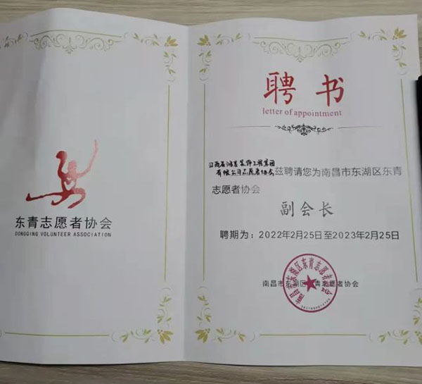 2022年2月25日,南昌市东湖区东青志愿者协会第四次会员代表大会召开。团市委副书记熊坚、团市委志联部部长李冰、团区委书记晏佩琦、东湖区民政局一级主任科员周劲辉、团区委副书记提名人员管凤娟出席大会,江西省鸿基装饰集团工程有限公司集团志愿者协会,作为新当选的副会长单位参加此次会议。