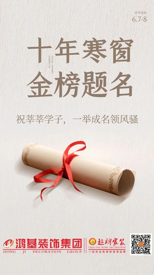 鸿基装饰集团祝莘莘学子,决胜高考,金榜题名