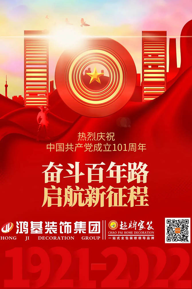 百年风雨,百年辉煌,从嘉兴南湖红船上扬帆起航,到如今新时代不忘初心,乘风破浪,中国共产党走过了101年光辉历程,回顾党的101年,风雨历程,中国共产党带领全国人民完成了一个又一个的华丽转身,让人民为之骄傲,让世界为之惊叹。站在新的历史起点上,中国共产党坚守使命与责任和强烈的历史担当,带领中国人民开启全面建设社会主义现代化国家的新征程,为实现中华民族伟大复兴而不懈奋斗。 丰功伟绩开天地,砥砺奋进谱新篇 回首不忘来时路,薪火相传再向前 值此“七一”建党节到来之际 鸿基装饰集团祝伟大的中国共产党生日快乐
