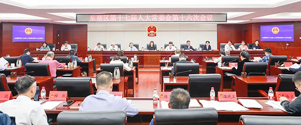 近日,东湖区第十七届人大常委会召开第十六次会议。区人大常委会主任陈兰主持会议,区人大常委会副主任谭阿莉、郑洪健、万里涛、周春雷、舒小红、许前佐出席会议,区委常委、区纪委书记、区监委主任邵应兰,区政府副区长许强,区政府副区长提名人选江珊,区人民法院院长李成晓,区监察委员会、区人民检察院及区政府相关部门负责人列席会议。南昌市人大代表、东湖区人大常委、鸿基装饰集团董事长胡克伟参加此次会议。