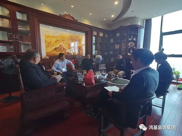 鸿基装饰集团董事长胡克伟对梅书记一行莅临表示热烈欢迎,介绍了集团创办历程和相关业务情况,随后进行座谈交流。集团运营中心张副总、设计中心余副总一同参加座谈会。