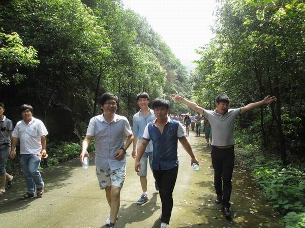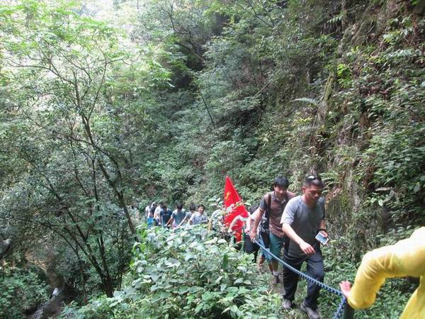 七月,透蓝的天空,悬着火球似的太阳,云彩好似被太阳烧化了,也消失得无影无踪。2014年7月7日,我们这“一大家人”再一次出发,这一站,武陵岩峡谷,武陵岩峡谷位于庐山以西,地处国家生态示范区——江西武宁东南部,武陵岩峡谷漂流景区是目前江西省接待量最大的漂流景区。酷热的天气也抵挡不住我们前进的脚步,我们一起爬山,在艰险的地方,互相扶持,虽然汗流浃背,但依然很快乐……两人一船的漂流过程中,危险的地方,相互帮助;打水战的时候,团结协作;欢乐声与嬉戏声在峡谷中回荡,让我们忘却了工作的压力和劳累……