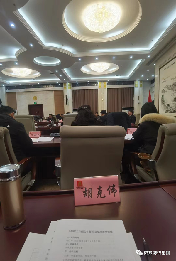 鸿基装饰集团董事长胡克伟参加市政府《政府工作报告》征求意见座谈会