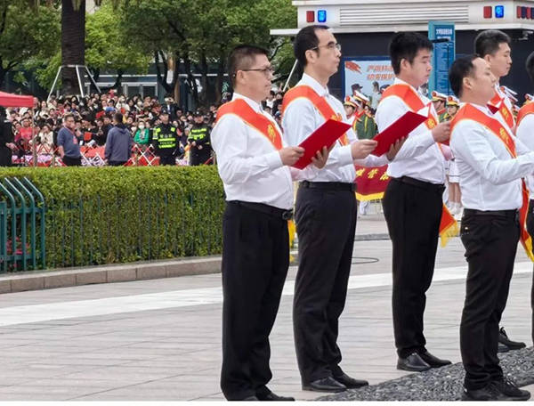 弘扬劳动精神,鸿基装饰集团董事长胡克伟参加五一升国旗活动