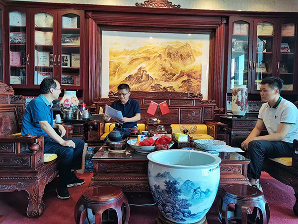 为进一步提升人大代表提案办理质量,近日,南昌市东湖区营商环境服务中心主任欧阳坚明等领导一行莅临鸿基装饰集团,对南昌市人大代表、东湖区人大常委、鸿基装饰集团董事长胡克伟在东湖区人大会议上提出的《关于优化东湖区营山环境建议》的提案进行答复,并进行了深入的座谈交流。