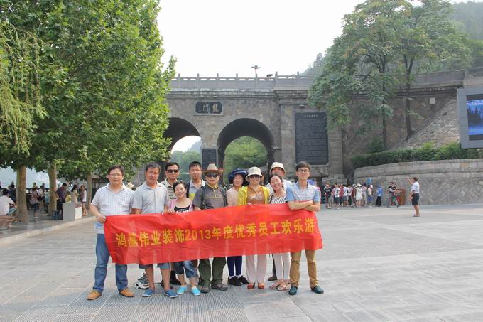 2014年7月南昌鸿基伟业装饰公司为鼓励员工再接再厉,拓宽员工视野,组织2013年度优秀员工前赴河南旅游活动。在2014年夏季来临之际,公司总经理胡克强带领十几名优秀员工赴河南,参观嵩山少林寺、洛阳龙门石窟、开封,并且考察了郑州的装修市场。
