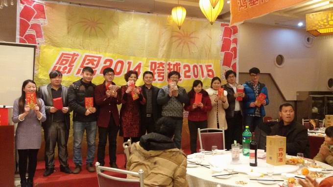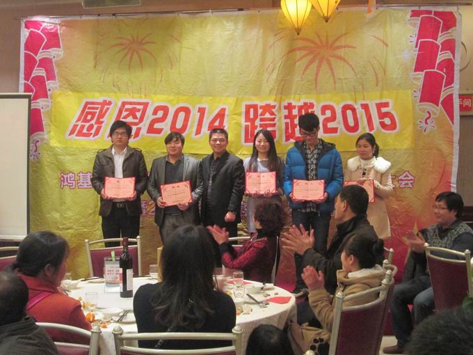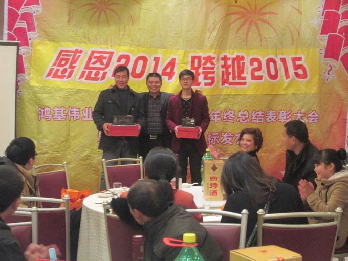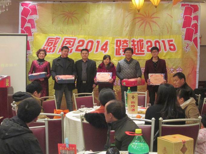 胡总为“2014年度优秀员工”颁发奖品,并合影留念
