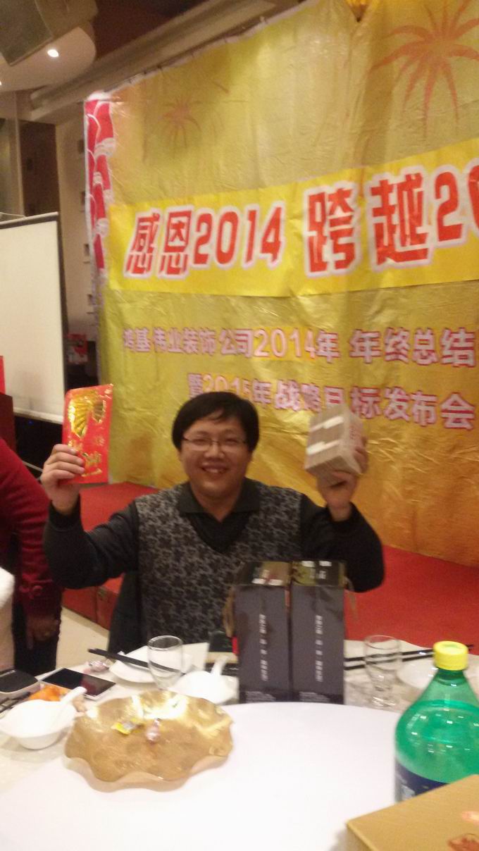 胡总为2014年度业绩第一名设计师:宋建敏;年度第一名工程经理:魏建保 颁奖