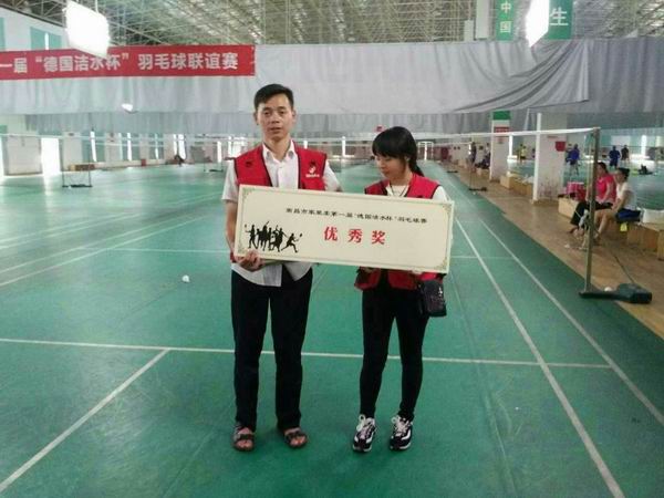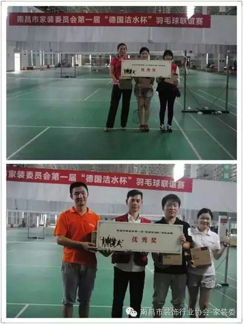 南昌全包装修领导品牌鸿基伟业装饰公司应邀参加家装委第一届“德国洁水杯”羽毛球联谊赛
