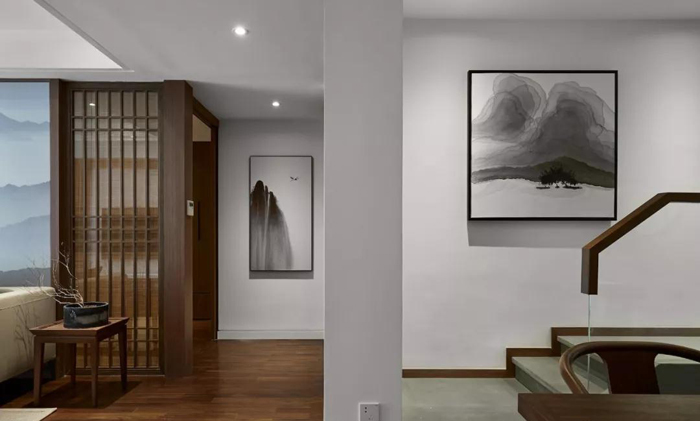 ▲ 走廊端景,装饰画增添中国风格调