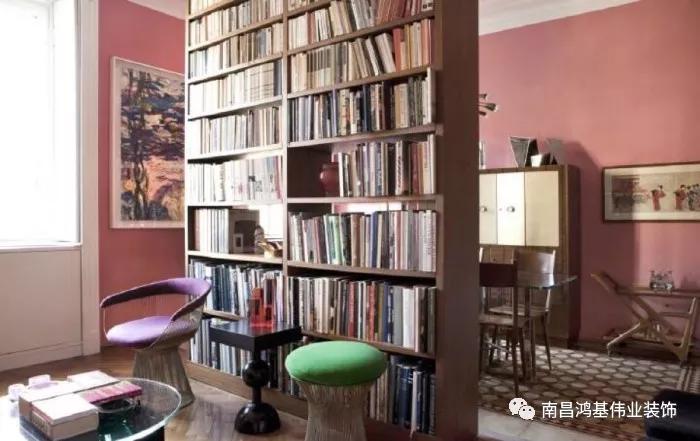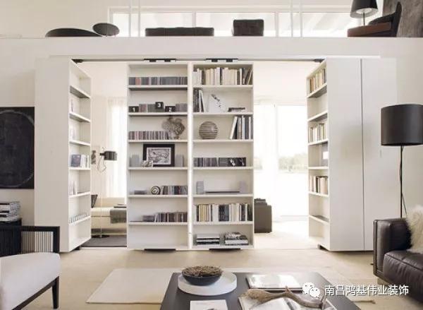 不要墨守成规,以为书架只能靠墙放置,可以将大型书架搬至要分隔的区域,这样轻易就可划分出两个独立的空间;如客厅和其他空间的交接地带,充分利用隔断做书架收纳,可有效放大空间。