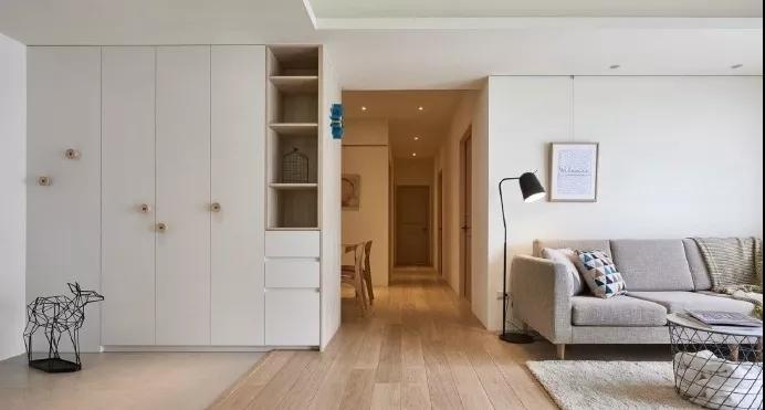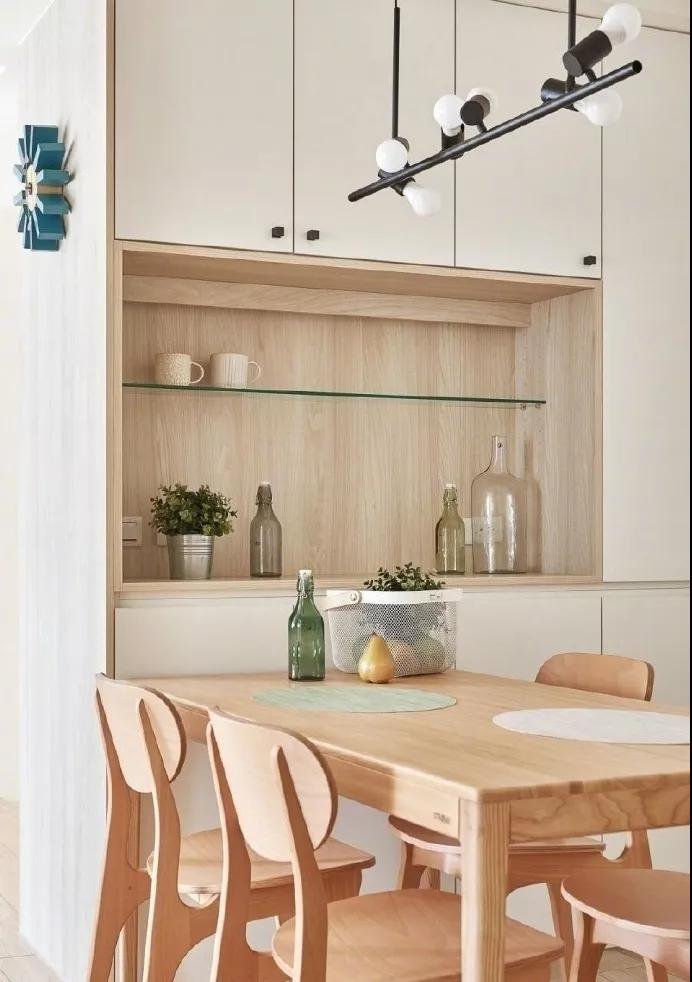 ▲餐厅区域在客厅的走廊后方,中间隔着一个收纳柜,为这套房子提供了丰富的收纳储物空间,为空间的简洁提供了保障。