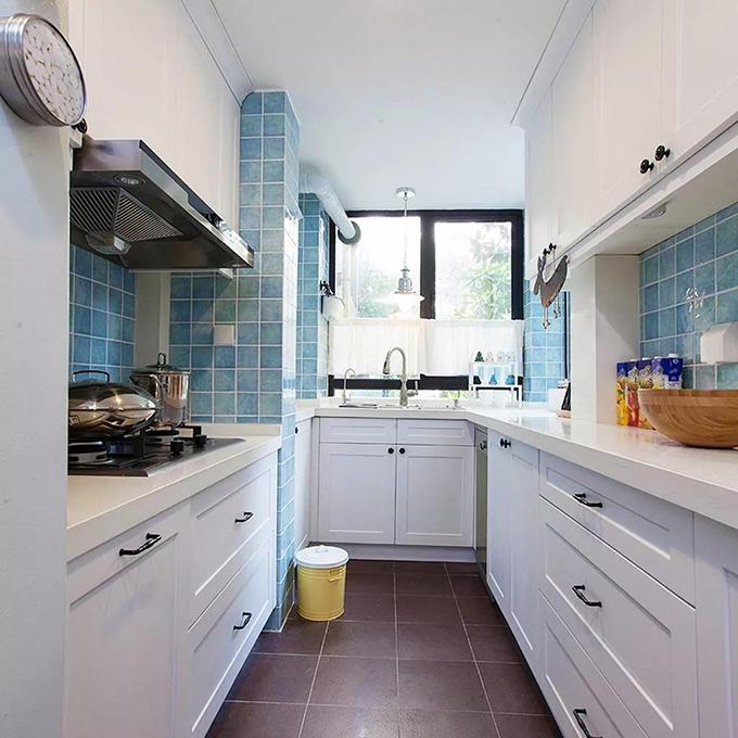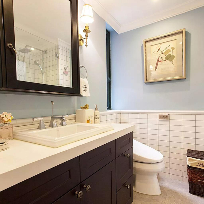 今天,鸿基伟业装饰小伟,为大家介绍的是一套套内面积76平米的小二房,以现代优雅的美式格调装修打造,在明亮活力的基础,装扮出一个端庄高档的空间,显得充满了优雅舒适的气息,让人倍感温馨,这才是家的样子嘛! 玄关 ▲开门后对着一个小墙,摆上一张端景台,布置上鲜花与蜡烛,挂上衣服装饰画,搭配端景台下方的收纳篮,让你一进门就能感受到活力与优雅的氛围。 客厅 ▲客厅面积不大,整体功能以会客位置,所以采用沙发与茶几纵向摆放的方式,两张小双人沙发与茶几纵向布置,沙发墙则是装成壁炉造型,对称式的边框造型,挂上两幅装饰画与壁灯,显得端庄而又优雅大方。 ▲电视墙以壁挂的电视机基础下,两侧与底部都装成收纳展示柜,摆上书籍与小饰品,显得文艺精致而又实用大气。 ▲明亮的客厅,在阳台位置是一个通往地下室的楼梯。 餐厅 ▲餐厅以软垫靠背的卡座搭配美式范的餐桌椅配套,结合2盏复古吊灯,结合桌面上精致的软装花饰,显得优雅而端庄。 ▲情调满满的餐厅,一场浪漫的晚宴,让人浪漫而舒适。 厨房 ▲U型格局的厨房,紧凑却也实用,靠窗的是水槽,两侧分别是灶具与备餐台,这样的分布,对于做饭来说真的是非常的好用。 卧室 ▲卧室墙面在淡蓝色的格调下加入白色边框与衣柜,实木床搭配一款花枝的床单,整体显得优雅而精致。 ▲百叶窗帘的落地窗,结合床头的两幅花饰挂画,让主卧充满了阳光与活力的气息。 儿童房 ▲儿童房墙面贴上红绿白的竖纹壁纸,而在腰线下的墙脚部位,则是贴上格纹壁纸,搭配上素绿的床单,床侧边斗柜上精致的摆饰,整个空间都充满了优雅清新的视觉感。 书房 ▲楼下的这个地下室,改造成了书房,在深色的书桌与书架下,与白色楼梯形成鲜明对比,为主人提供了一个安静舒适的在家读书办公空间。 卫生间 ▲卫生间除了墙脚是贴着白色小砖,墙身部分都是淡蓝色的乳胶漆,结合上高档精致的深色洗手盆,墙面、台面上精致的小饰品,让卫生间区域也是显得格外的文艺优雅。 ▲此外还有一个浴缸+淋浴的区域,在白砖墙面的基础,为主人提供了一个舒心惬意的放松小角落。
