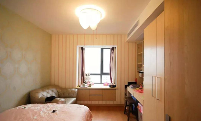 女儿房间的衣柜也是原来的家具,大家没有看出来吧。为了搭配浅色的柜体颜色,地板选择的也是偏浅的木地板。气球造型的灯充满浪漫气息,非常梦幻。