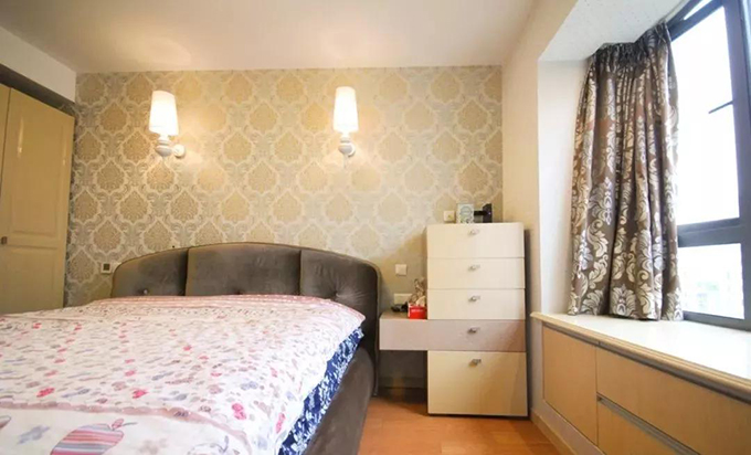 做飘窗也是打造收纳空间的一个好方式,飘窗下面的柜子里可以收纳,闲时也可以坐在上面听听音乐、看看书。插座的位置是原本就定好的位置,家具、台灯都是根据插座的位置摆放安置的。