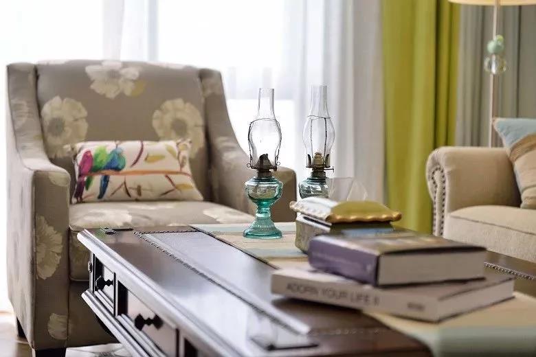 茶几上精致的洋油灯、抽纸盒等小饰品,为客厅带来了不少的美式风情。